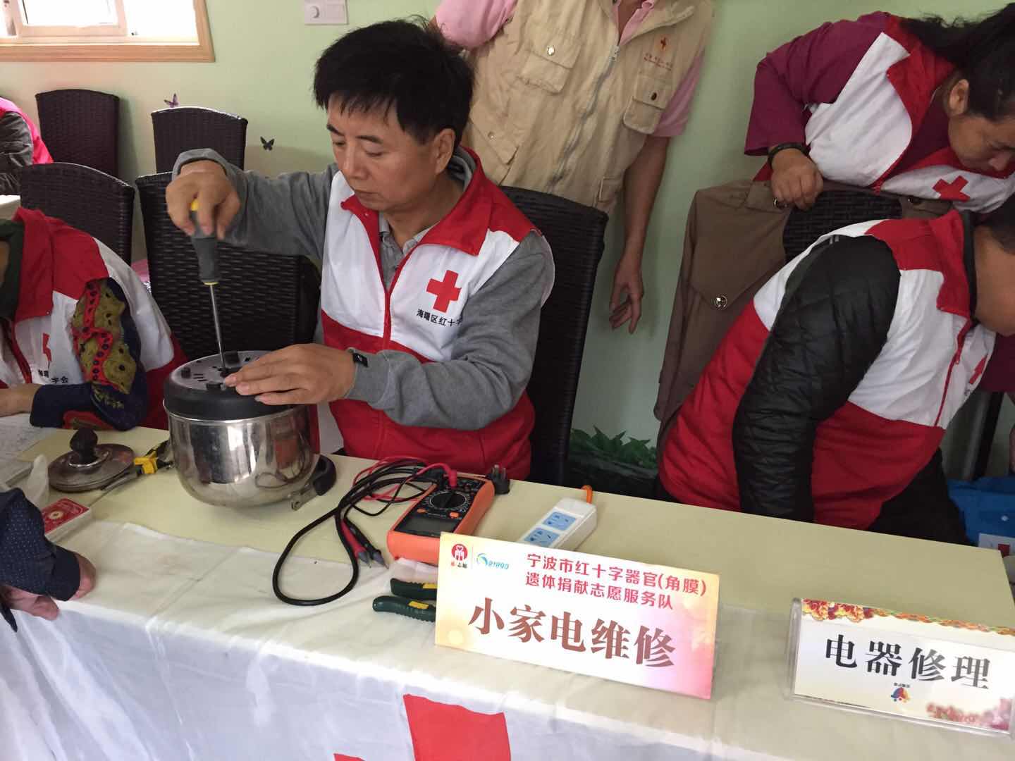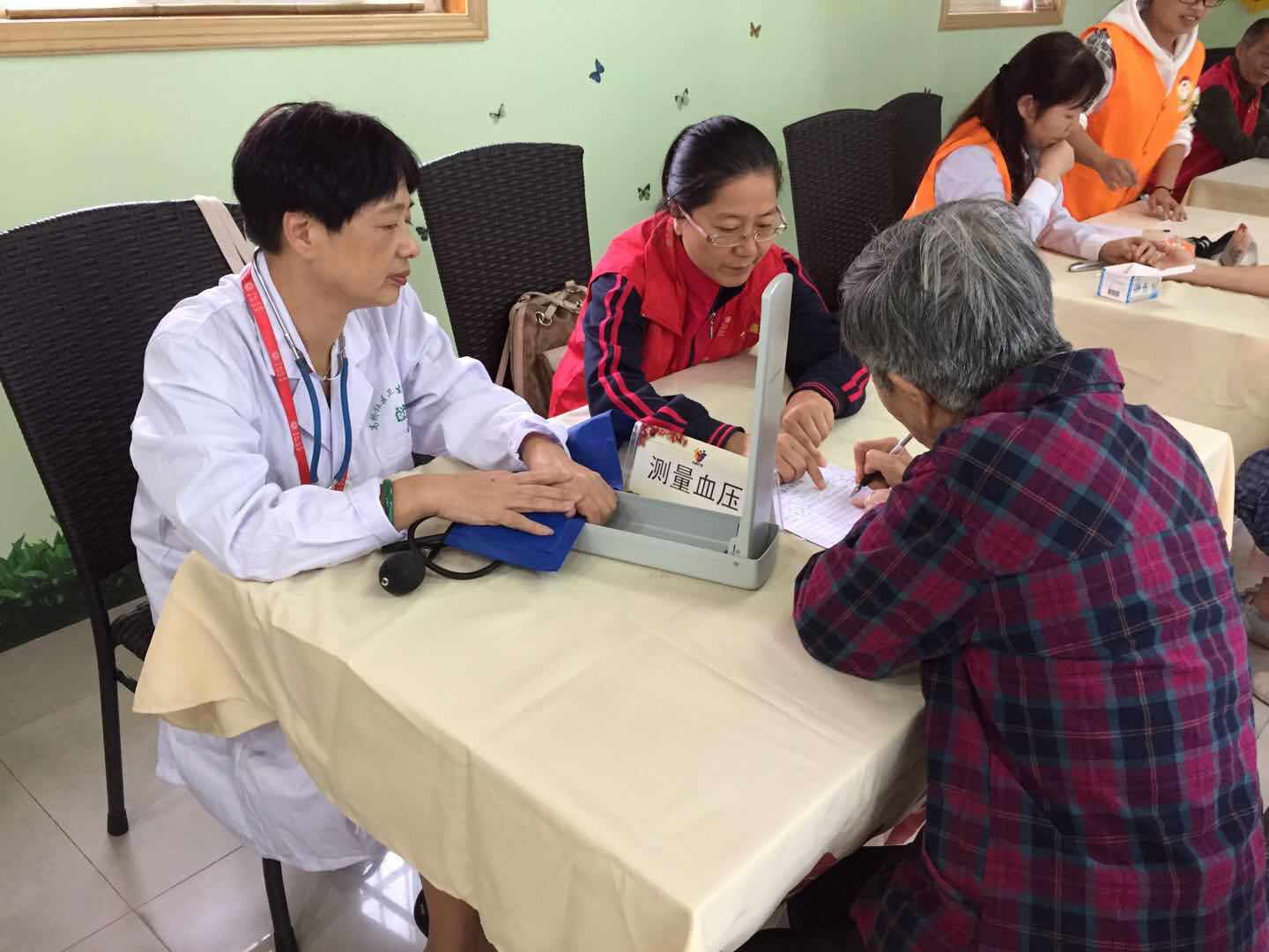 這天,安健居家養(yǎng)老服務(wù)中心攜手寧波市紅十字會(huì)和百川公益,來到了郎官社區(qū)服務(wù)站里,為社區(qū)老人們開展了一系列的公益活動(dòng)。